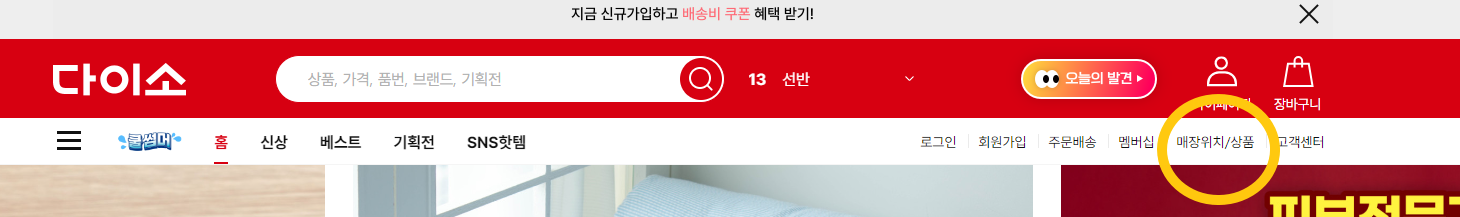 다이소 몰 웹 사이트 이용하여 재고 확인하기