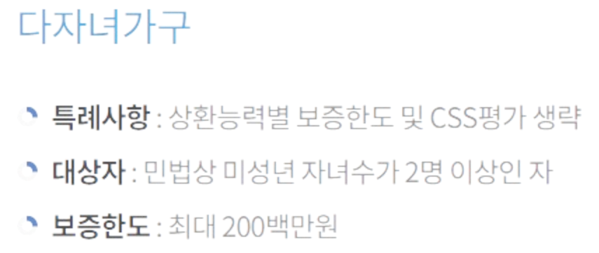 ● 다자녀 가구의 경우 보증한도 및 상환능력별 CSS 평가가 생략됩니다.