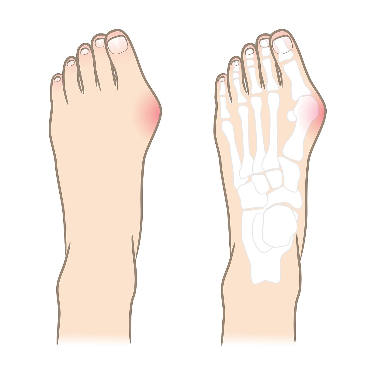 즉 발의 구조적 변형이 일어나 엄지발가락의 관절이 돌출되어 통증을 일으키고, 그로 인해 발의 다른 부위에도 영향을