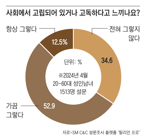 고독·고립은 노년층의 전유물처럼 여겨지곤 했는데, 이번 설문 조사에서는 의외의 결과가 나왔습니다.