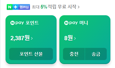 🟢  네이버 페이 머니 :  내 계좌에서 충천한 금액으로, 머니로 결제하면 추가 적립이 제공
