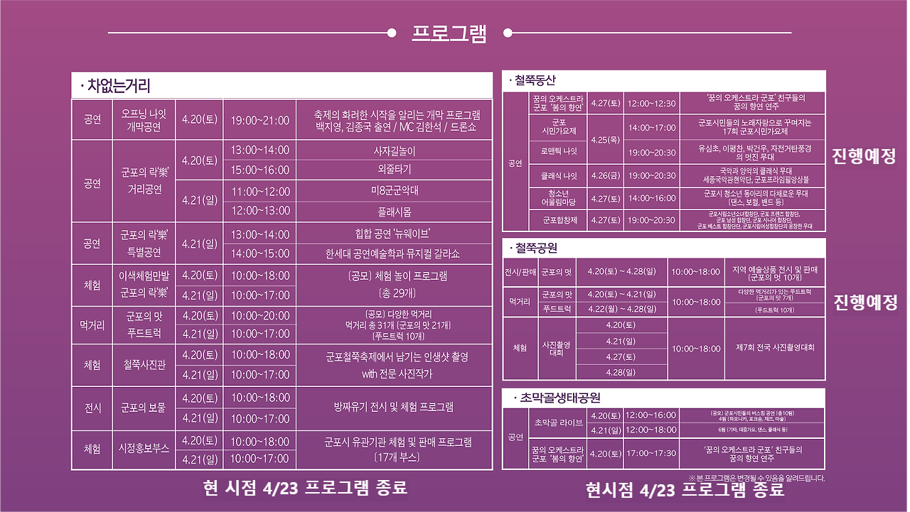 군포시 철쭉동산 일대 개최.프로그램, 공연, 아티스트 안내