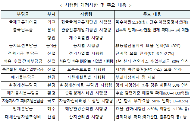 이번 시행령 개정은 지난 3월 27일 제23차 비상경제민생회의에서 발표한 부담금 정비 및 관리체계 강화 방안의 후속조치로, 국민과 기업의 부담을 완화하기 위한 방침입니다.