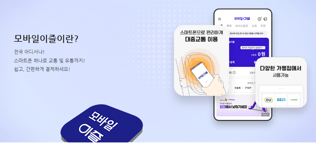 | 모바일로 편하게 K-패스 이용하고 싶다면? 모바일이즐 앱 설치하고 K-패스에 등록하면 간편하게 이용 가능! |