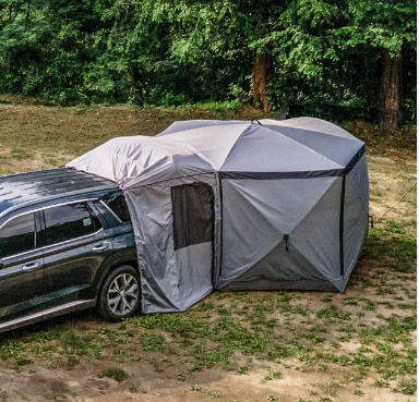 차량 후방 및 지붕에 결합해서 사용하는 텐트로 보통 SUV, 밴, 트럭과 같은 차고가 있는 차량에 사용하기 적합한 텐트다. 차가 있어야만 사용이 가능하고 장소와 땅의 상태에 관계없이 내가 원하는 곳이면 어디든 캠핑이 가능하다.