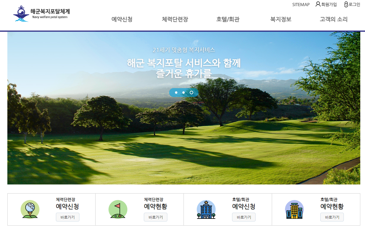 해군 복지 포털 시스템은 해군 구성원과 그 가족을 위해 다양한 복지 서비스를 제공하는 플랫폼입니다. 이 시스템은 군인의 일상 편의를 증진하고 전반적인 복지 수준을 향상시키기 위해 개발되었습니다. 이제 골프장, 콘도, 호텔, 홀 등 다양한 시설 예약 방법에 대해 알아보겠습니다.
