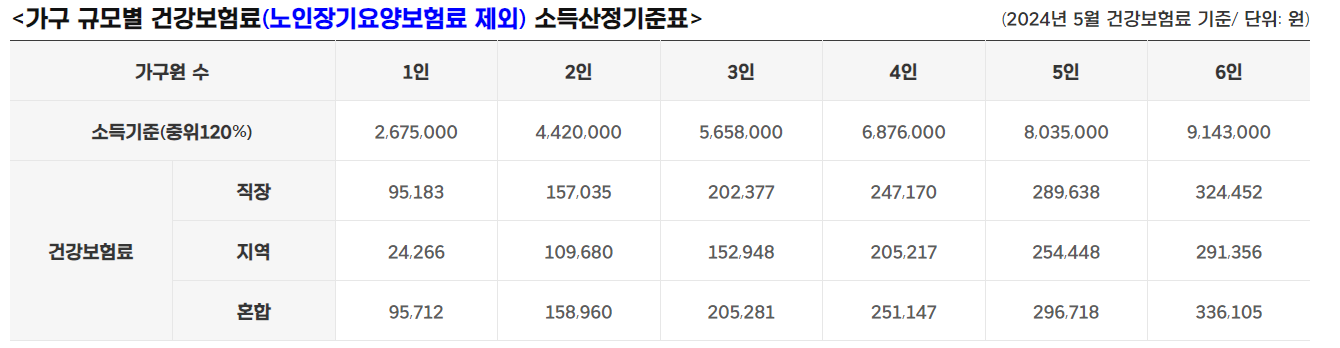 - 건강보험료는 노인장기요양보험료를 ‘제외’한 금액을 기준으로 함