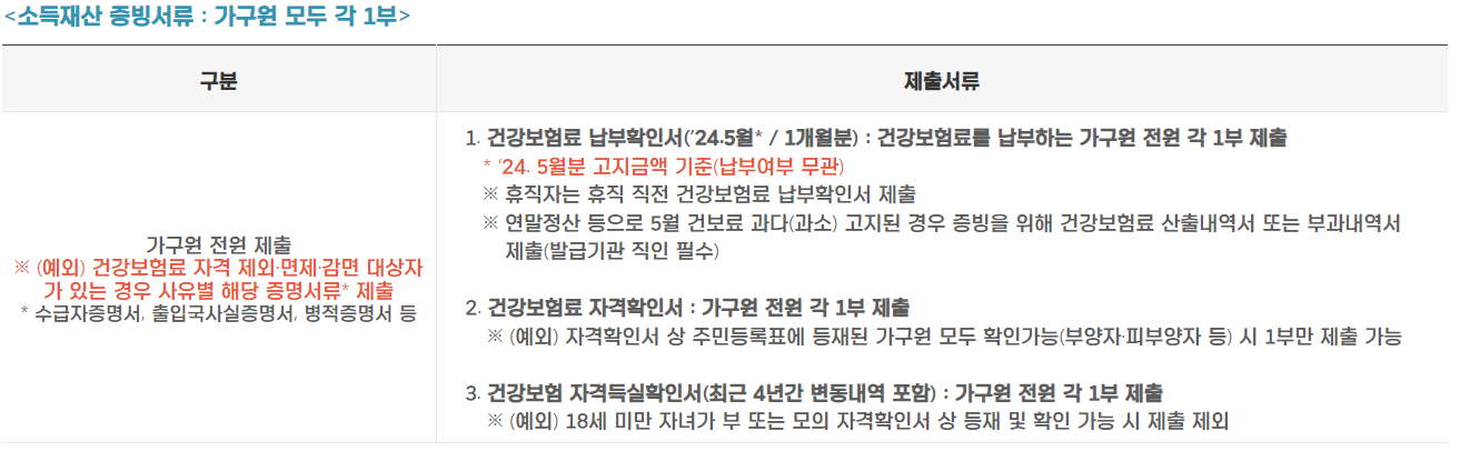 5. 소득재산 증빙서류(건강보험료 납부확인서, 건강보험 자격확인서, 건강보험 자격득실 확인서 각 1부)