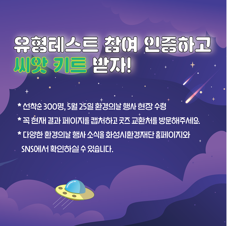 경기 화성시 환경재단에서 5월 25일에 신텍스에서 환경의 날 행사를 진행한다고 합니다.