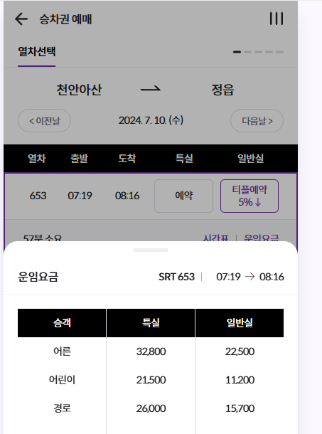 승차권 예약/발매 - 국민철도 SR